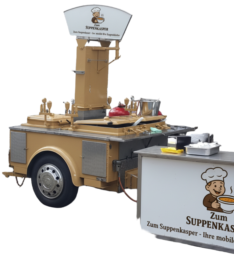 Kar der Freie ist unser größter Suppenwagen und ist für jede große Veranstaltung bereit. Mit seiner robusten Ausstattung und der Fähigkeit, eine Vielzahl von köstlichen Suppen zuzubereiten, spielt er eine zentrale Rolle in unserer Suppenküche. Egal ob bei Festivals, Straßenfesten oder Charity-Events, dieser mobile Suppenstand sorgt dafür, dass jeder Gast mit herzhaften und nahrhaften Speisen versorgt wird. Wir glauben daran, dass die Liebe zur Suppe Menschen zusammenbringt, und mit Kar der Freie machen wir dies möglich.